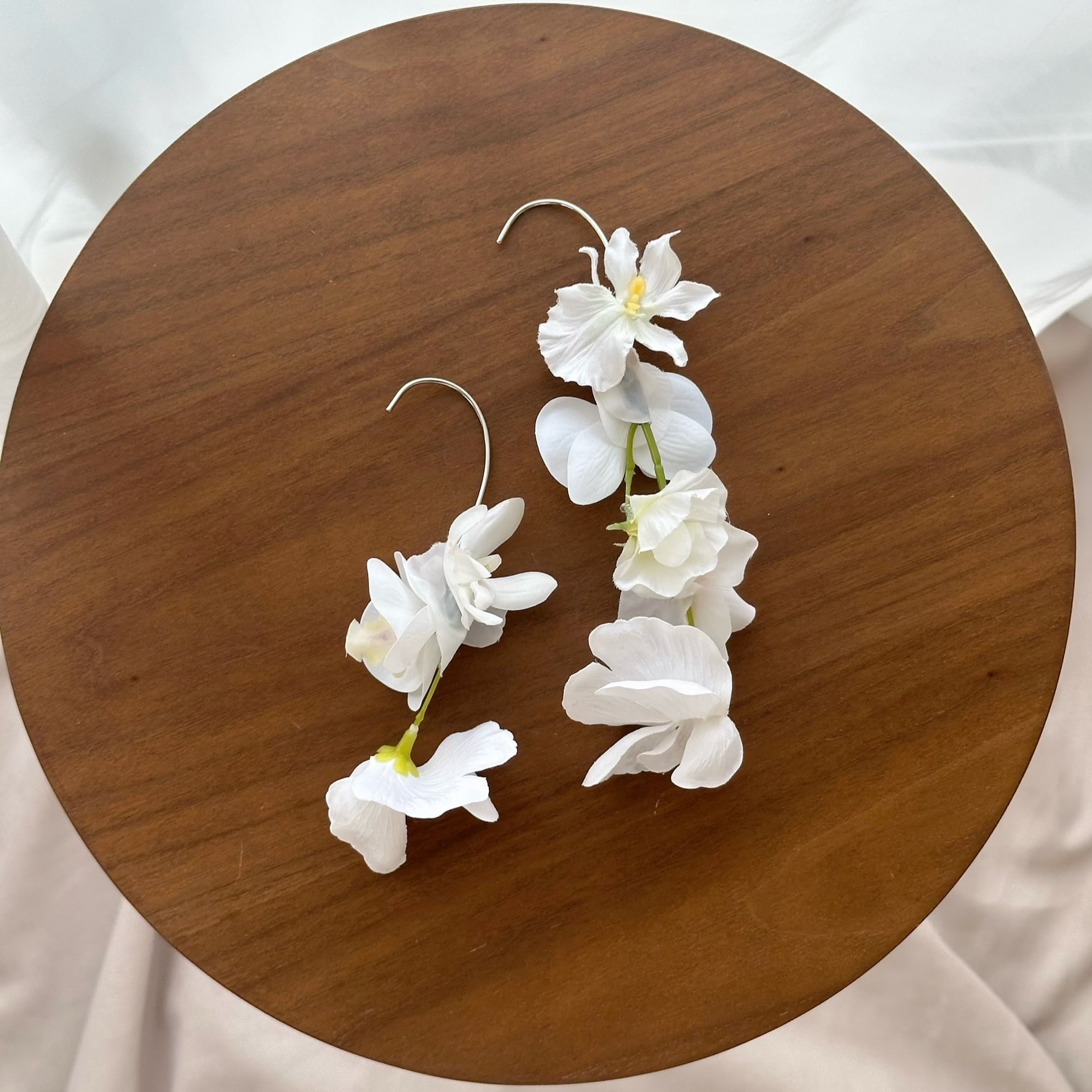生花のように美しい高級造花アーティフィシャルフラワーを使用した、特別なイヤーカフ左右セットです。