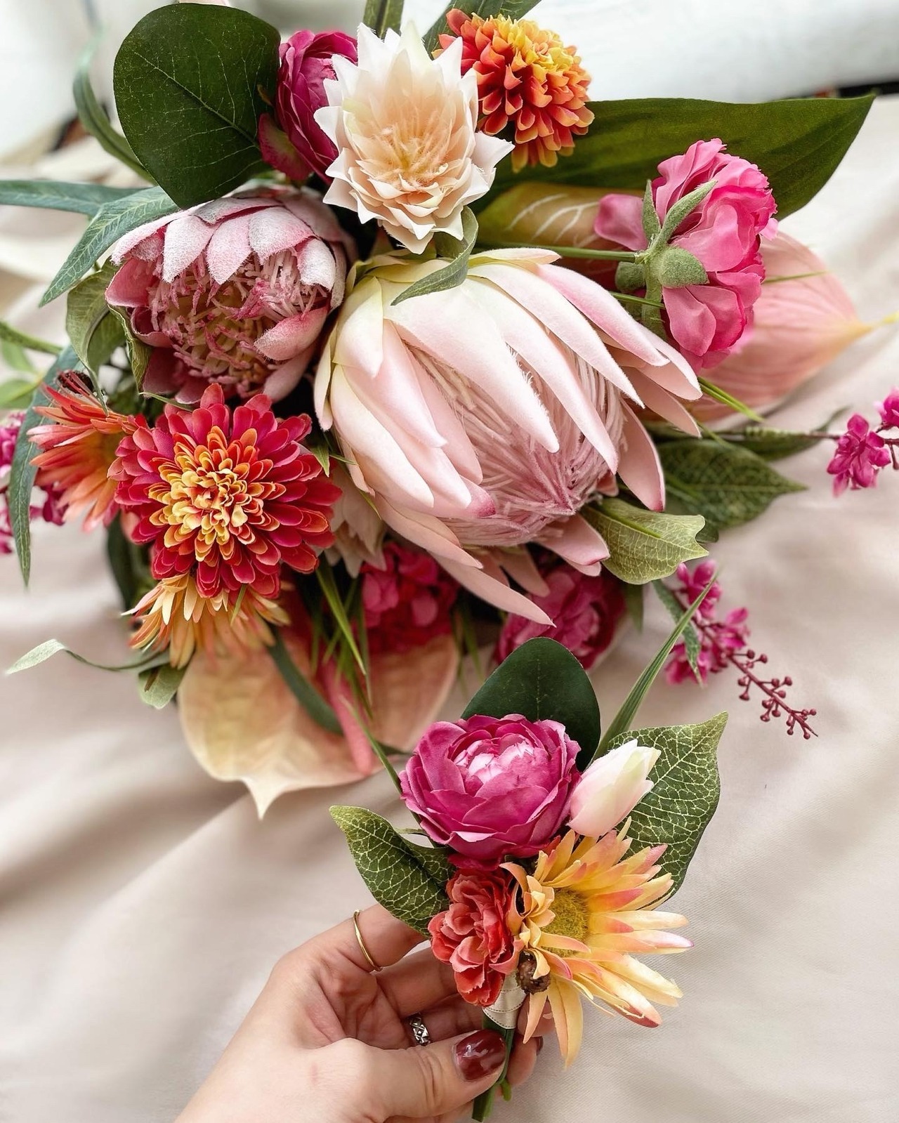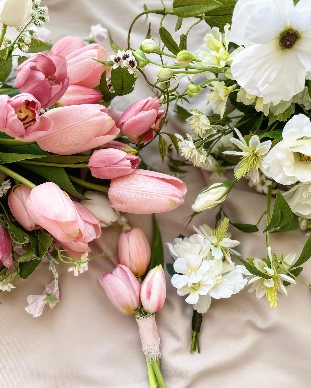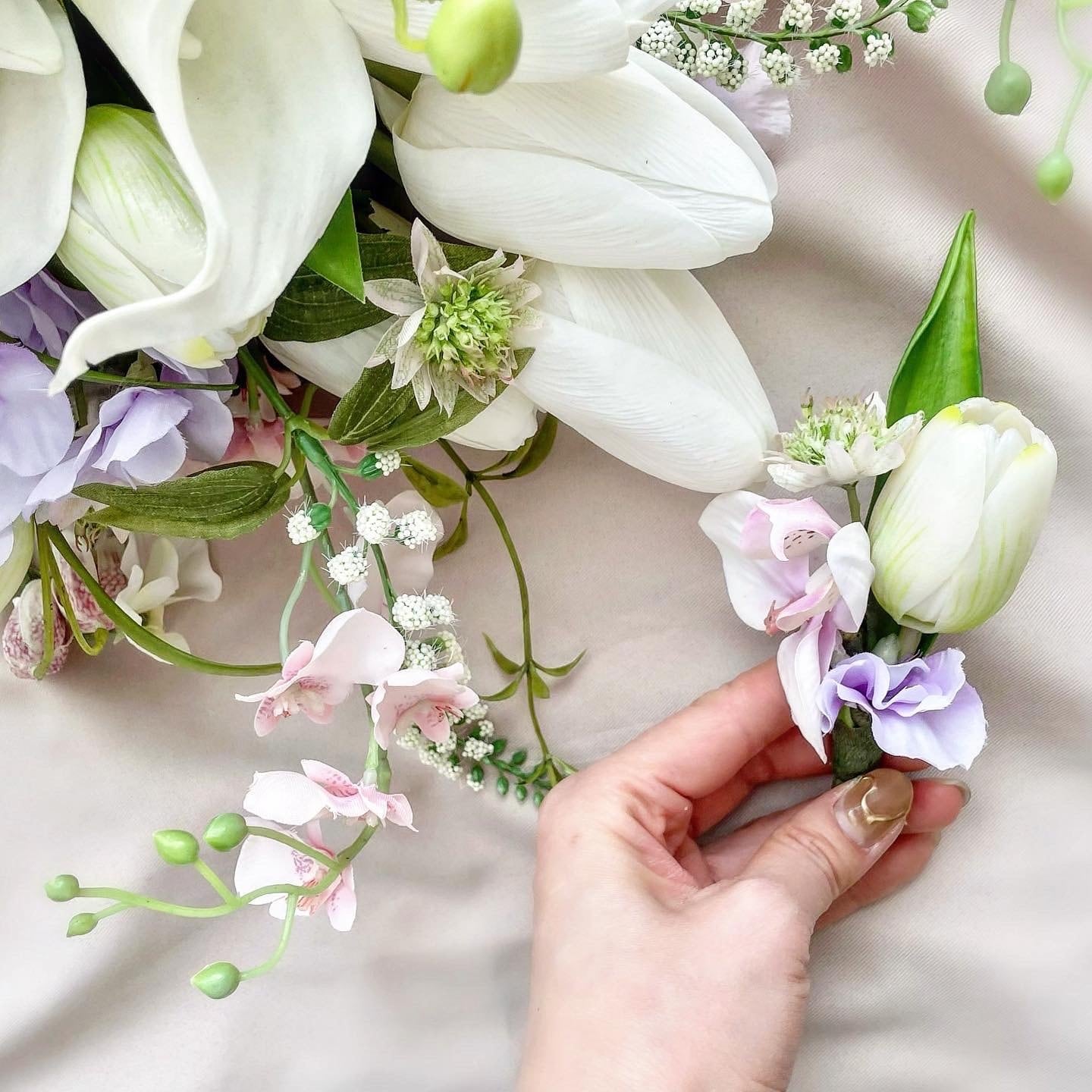 基本的にはブーケと同じ種類の花材やお色味でお作りします。